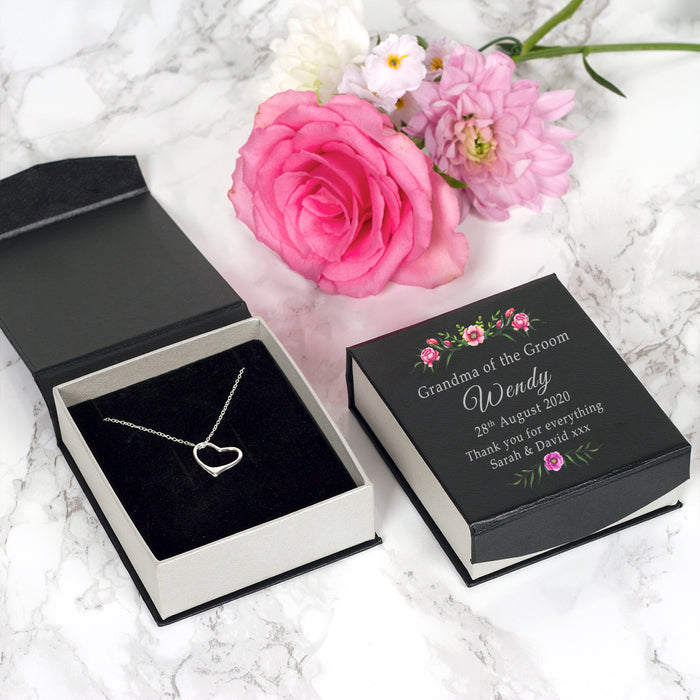 Sterling Silver heart pendant and chain in a personalised case. Lovely gift for all of your bridal party.