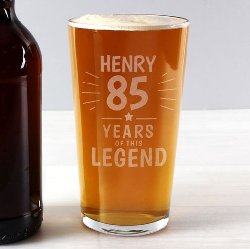 Celebrate a 85th Birthday in style with this Personalised Years Of This Legend Pint Glass